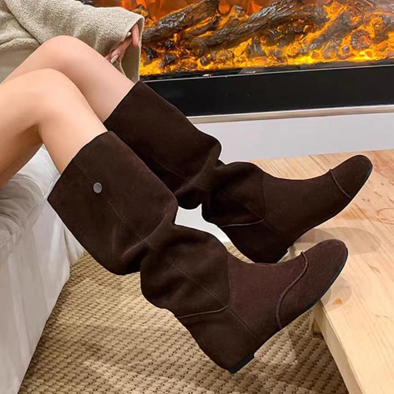 Flats Women's High Boots Fashion Knee High Suede Shoes Chelsea Boots New Walking Comfort Motorcycle Mujer De Botas