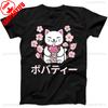 Maneki Neko Boba Bubble Tea Sakura Lucky Cat Funny Gift Tee Black T Shirt for Fitness Training Jogging Outdoor Activities