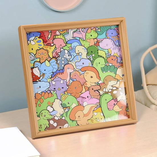 Assemble irregular dinosaur-shaped pieces to create a unique, hand-colored decoration that doubles as a charming photo frame, adding a personalized touch to your home decor. Ideal for DIY enthusiasts, this puzzle encourages artistic expression while providing a fun and rewarding crafting experience.