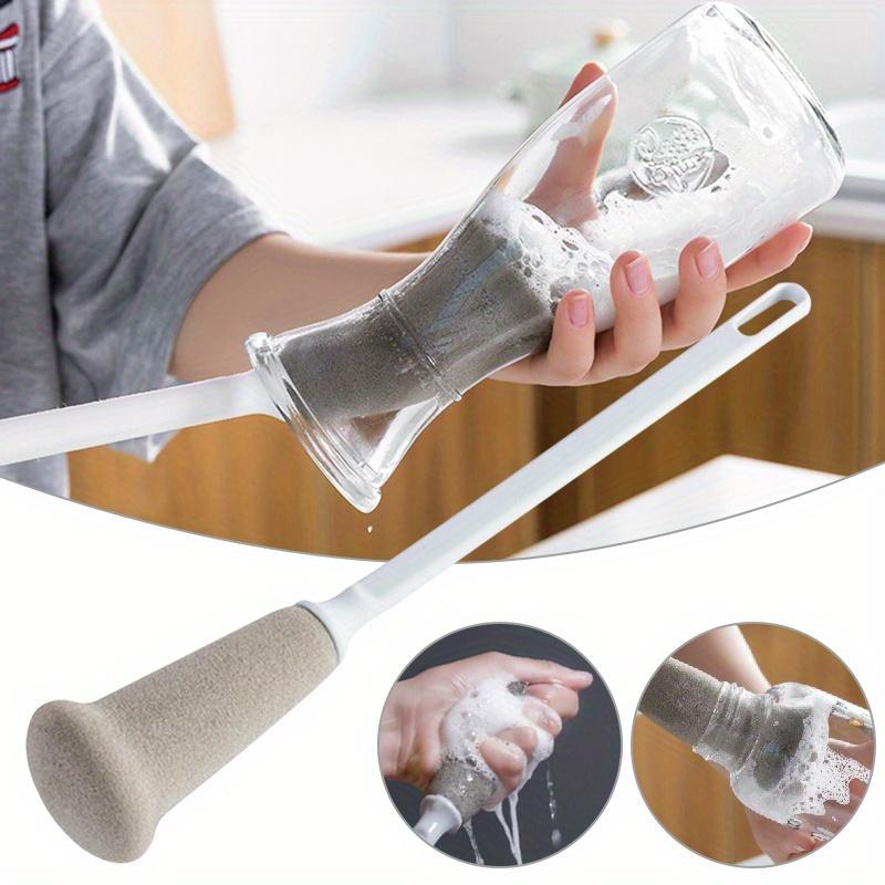 1PC Nordic-style Long-handled Sponge Brush, Suitable for Bottles and Cups, with a Soft Sponge Head for Scrubbing Kitchen Utensils.