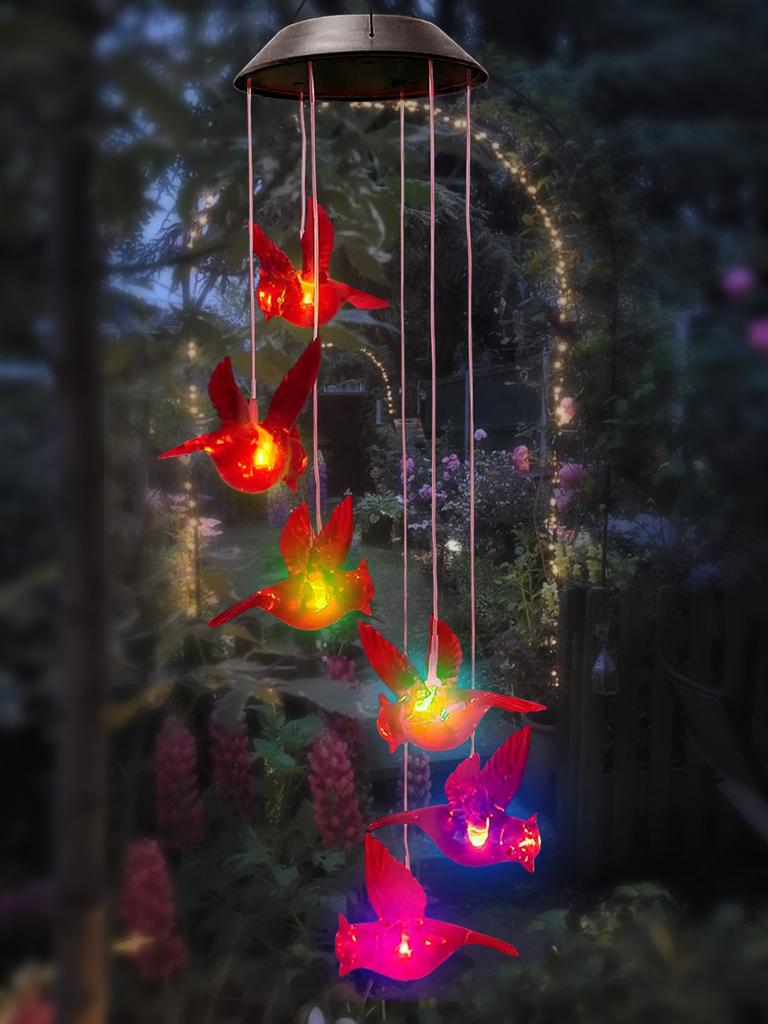 1 Pc Solar Outdoor Cardinals Wind Chimes Color Changing Light Waterproof Patio Decorative Light Holiday Party Atmosphere Light