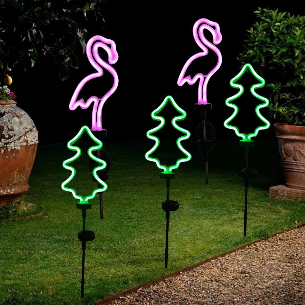 Neon Solar Garden Light Waterproof Landscape Courtyard Lamp Christmas Tree Flamingo Neon Lights Christmas Party Decor Supplies