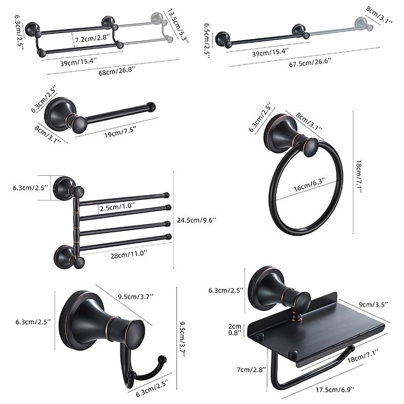 Bathroom Bath Toilet Paper Holder Robe Hook Bathroom Retractable Towel Hanging Rod Black Zinc Alloy EL852