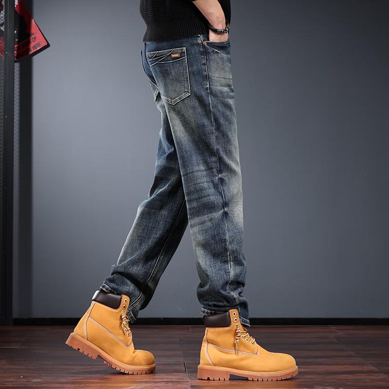 Jie Leinuo Men's Loose Straight-Leg Washed Jeans