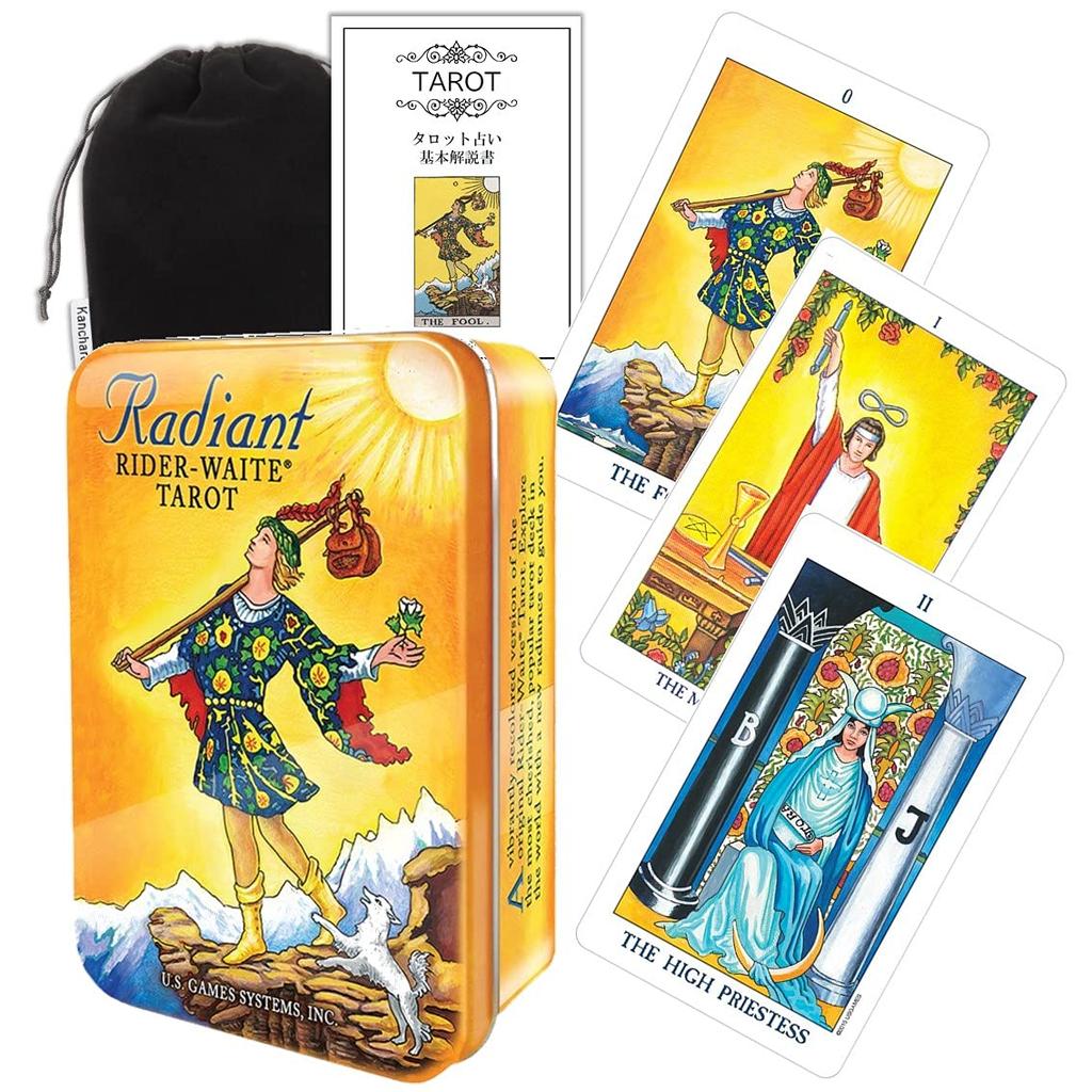 Includes a Japanese instruction manual (not specific to the product) that explains the basic meanings of tarot cards and how to read them, as well as a pouch for storing the cards.
