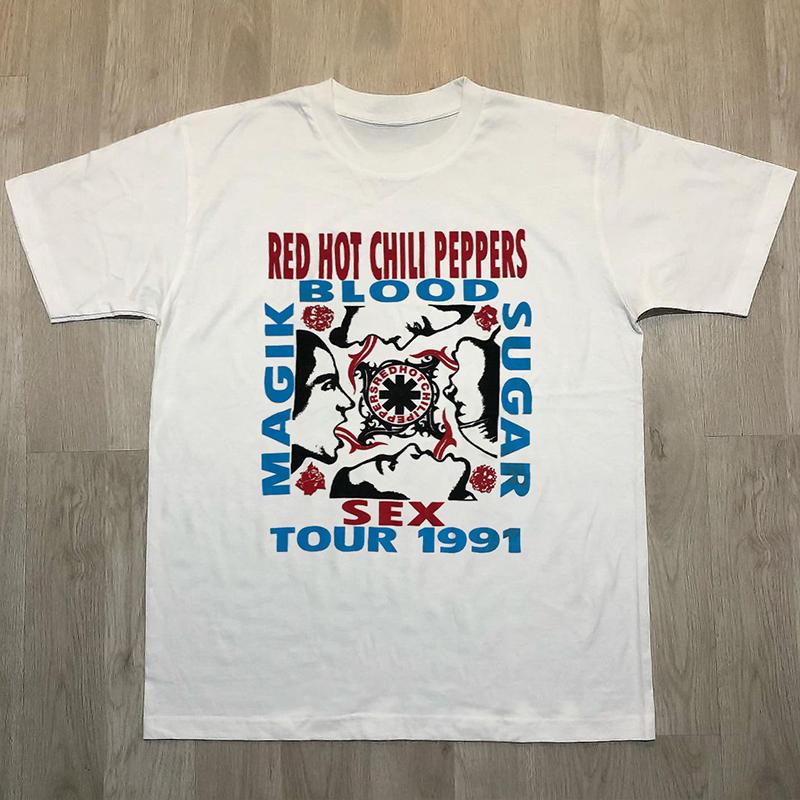 2025 Red Hot Chili Peppers American Retro Rock Vintage High Street Casual Fashion Brand Heavy Cotton Short Sleeve T-shirt Men