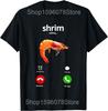 Shrim Is Calling Meme Funny Shrimp Fish Fih T Shirts Men Cotton Humor Christmas Adventure Short Sleeve Unisex Loose Clothing