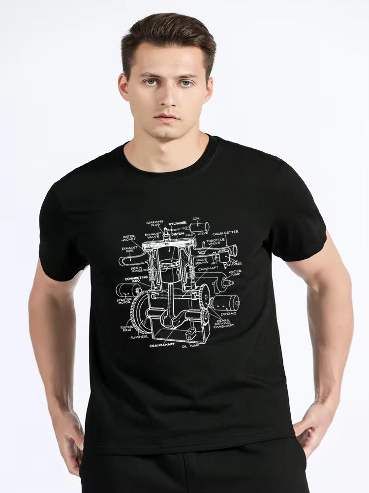 Mechanics Car Engine Pieces Cars Lovers Muscle Cars T-Shirt Men's Fashion Clothing Carguy Graphic Tee Tops Husband Daddy Gifts