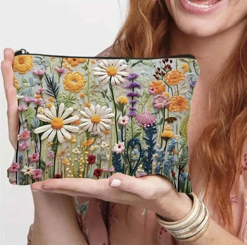 Large Capacity Floral Double-sided Printed Makeup Pouch Travel Organizer Handbag Linen Women Cosmetic Storage Bag For Gift