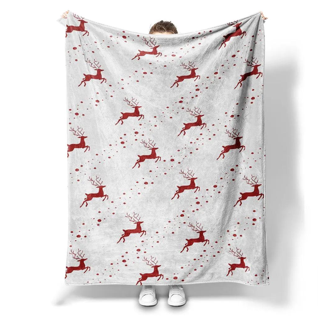 1pc Simple Christmas Deer Printed Blanket for Sofa Bed Travel Camping Living Room Office Conditioning Blanket for All Seasons Gi