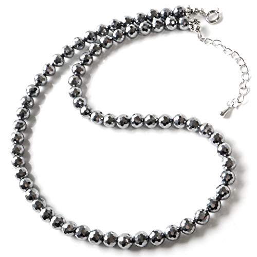 [GOLD STONE] Genuine Terahertz Ore Necklace, 6mm, 128-facet, Mirror Ball Cut, Power Stone, Natural Stone, Hook Type, Approximately 60cm Long