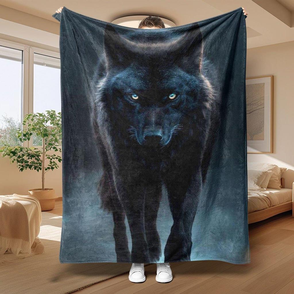 1pc Majestic Black Wolf Flannel Blanket - Realistic Wolf Head Print, Ultra-Soft & Cozy All-Season Plush Throw for Home