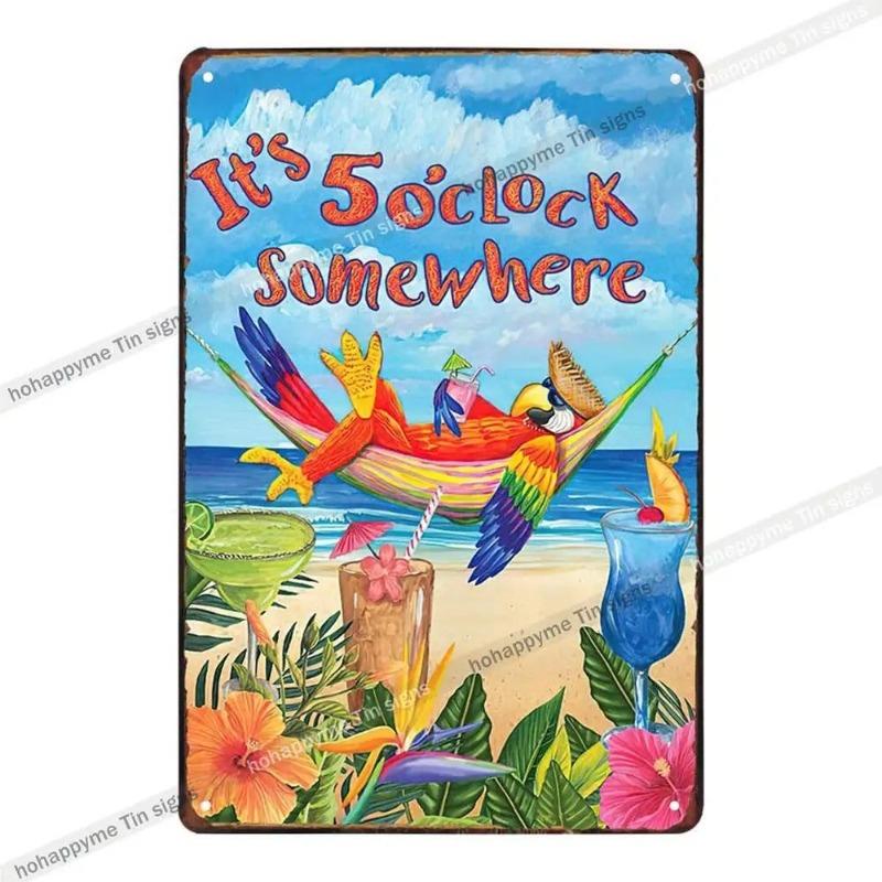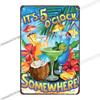 5 O'Clock Vintage Tin Sign, Retro Metal Wall Decor