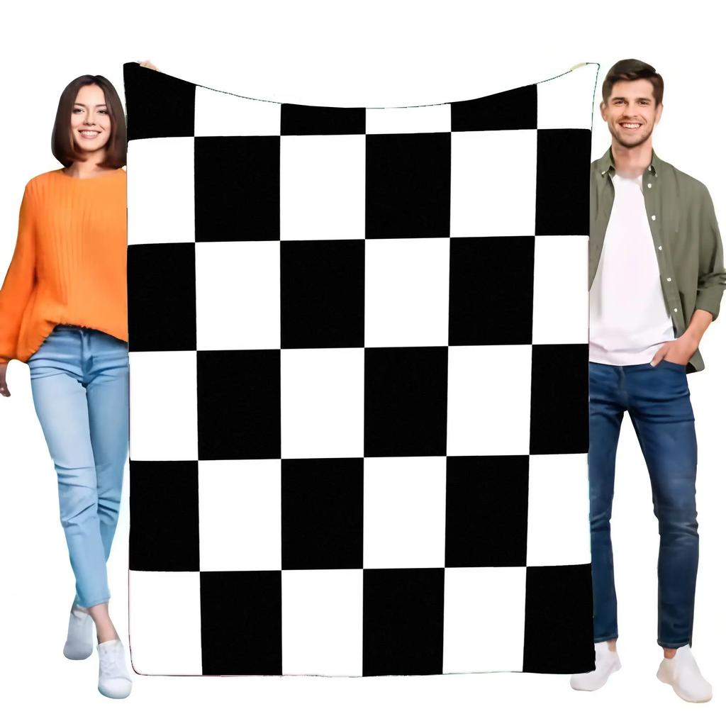 Black White Checkerboard Blanket Soft Fleece Throw for Sofa Bed Living Room Dorm Decor Lightweight Cozy Racing Flag Design Gift
