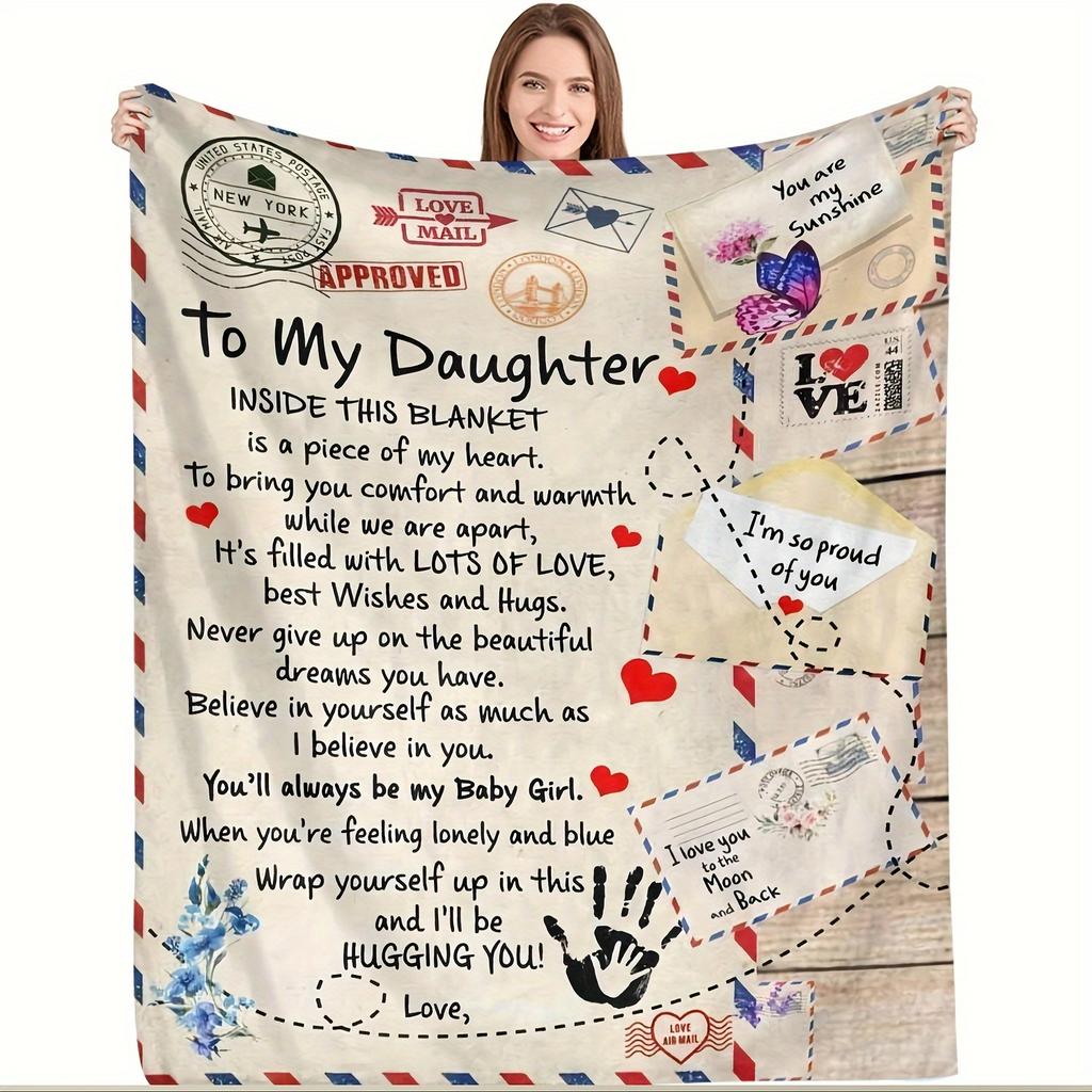 Cabin-Style Cozy Flannel Blanket "To My Daughter" with Heartfelt Message - Soft Warm All-Season Comfort Perfect for Sofa or Bed