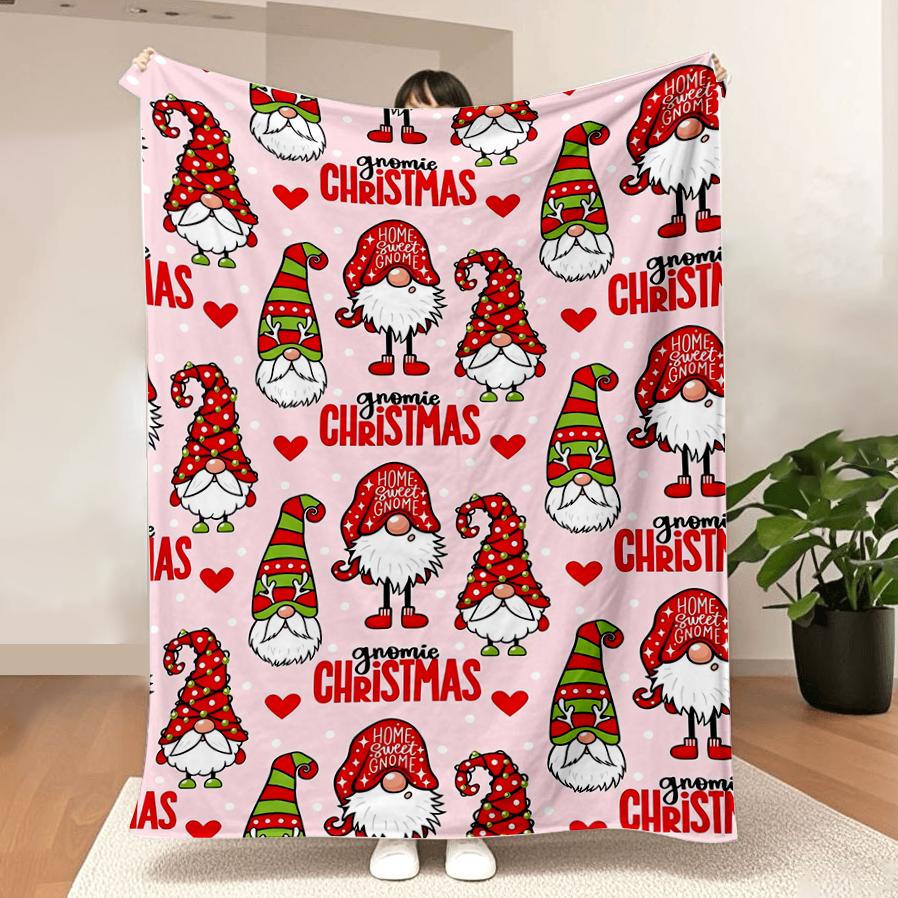 Christmas Gnome Pink Fleece Blankets Cartoon Cute Soft Flannel Cozy Blanket for Adults,Washable Lightweight Fuzzy Blanket Gift