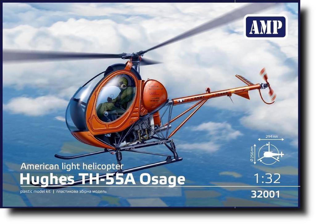 AMP "1/32 American Hughes TH-55 Osage Light Helicopter" plastic model kit.