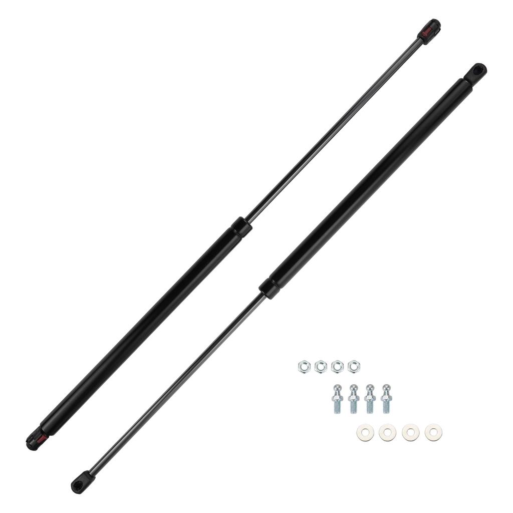 Performance: Extension Length: 27 inches, Compression Length: 15.2 inches; Force: 100lb/445N/44.5kg. The gas spring supports weights between 85-115lb (378-512N). The lift support struts are made of durable carbon steel, making them strong and durable for supporting heavy covers and items. They are widely used for car hoods, rear hatches, RV windows, RV cabinet door covers, storage box covers, and more.