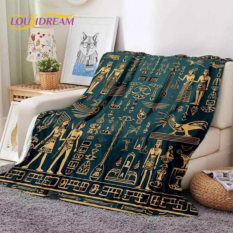 Egyptian Mythology Flannel Blanket Pharaoh Hieroglyphic Print Throw for Bed, Sofa or Picnic Soft Gift for Outdoor Leisure & Home