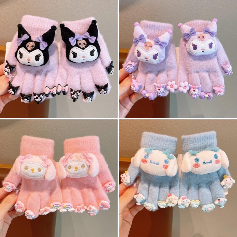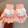 Girls' Kuromi Fleece-Lined Fingerless Gloves - Warm, Cold-Proof, Autumn/Winter Children's Accessories