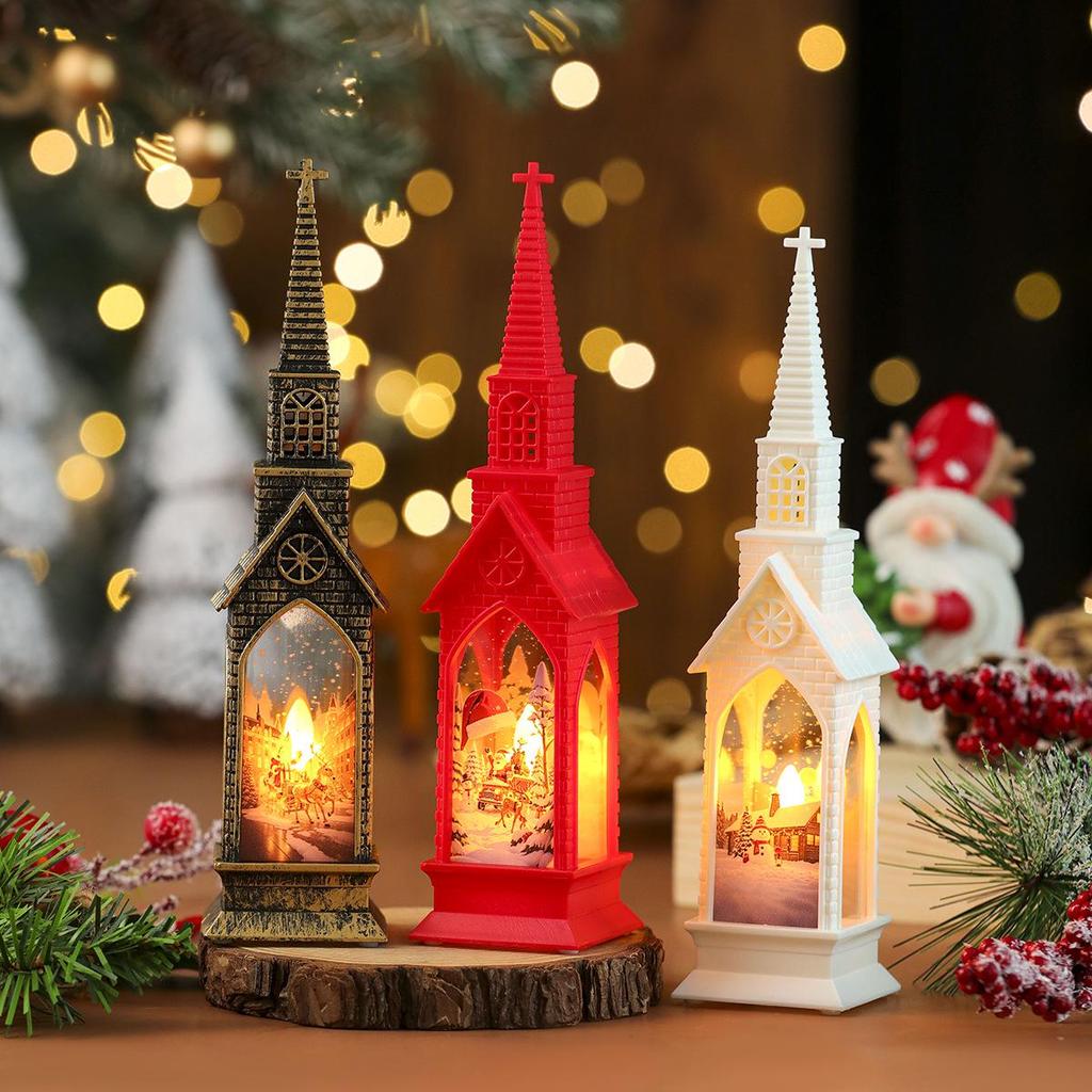 Cross-border Christmas Lantern: Church-Shaped Night Light with Electronic Candle