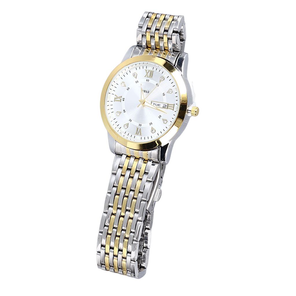 Men Quartz Business Watch with Date Luminous Stainless Steel Double Calendar Wristwatch Waterproof Lightweight Watch