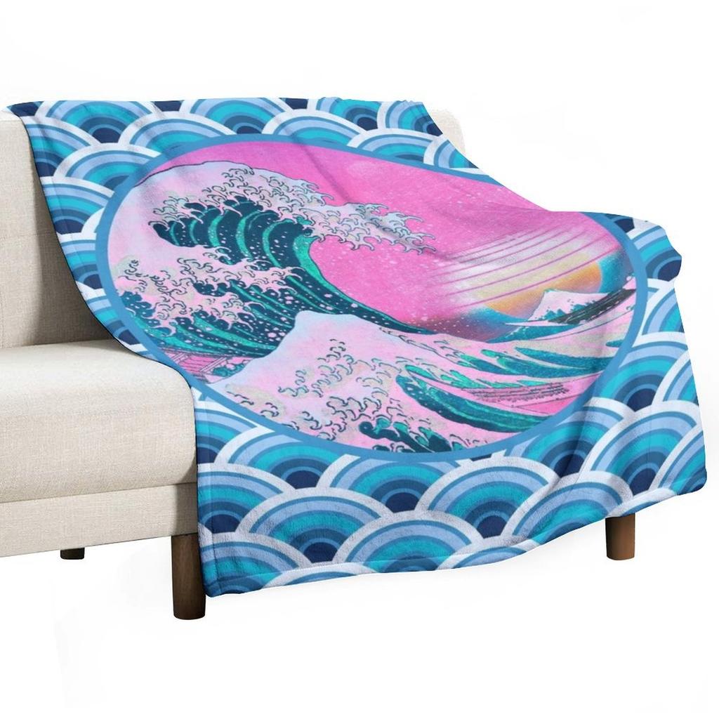Vaporwave Aesthetic Great Wave Seigaiha Ocean Sunset Throw Blanket for Sofa Christmas Gifts Plaid Thin Blankets