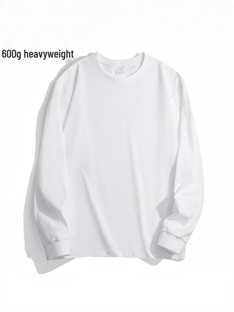 600G Heavyweight Men's Loose Fit Pure Cotton Long Sleeve T-Shirt - Small Neckline, High Gram Weight, Autumn/Winter.