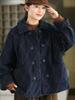 Johnature Women Vintage Turn-dwon Collar Long Sleeve Winter Coats Button Patchwork Pockets Coats