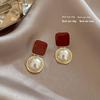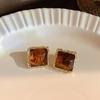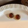Maillard Coffee Color Amber Earrings Women's Autumn and Winter High-end Commuter Style Earrings Light Luxury Niche Design Earrings