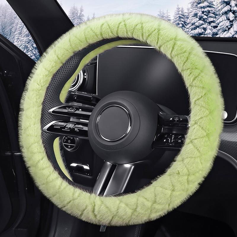 Winter Plush Steering Wheel Cover - High-Density Soft Pile, Warm and Comfortable, Fits 14.5-15 Inch Round Steering Wheels