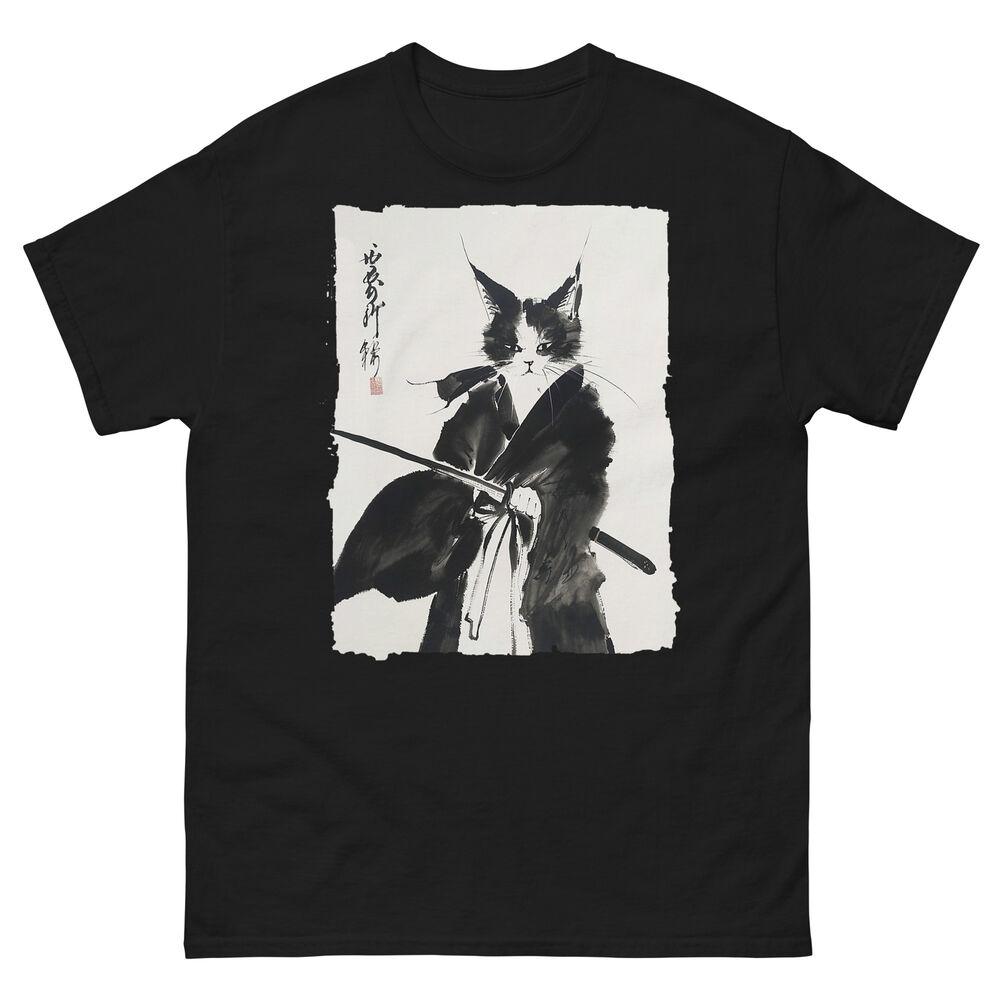 Samurai Cat Vintage Ukiyo-e Warrior Art Graphic Cat Art T-Shirt