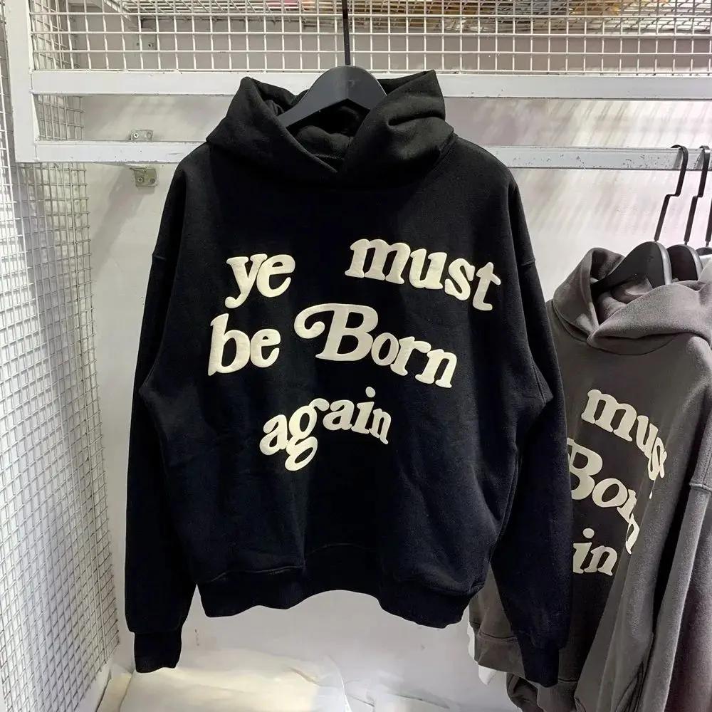2024Fw Puff Print Kanye West Hoodie Men and Women 1:1 Pink Leaf Color Must Rebirth Hoodie Plus Size Pullover CPFM Sweatshirt