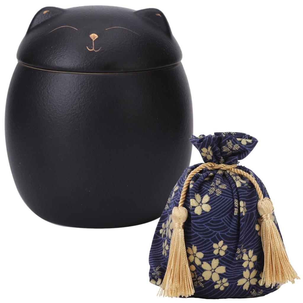 Lebonarie Mini Pet Urn, Cat-Shaped, with Japanese-Style Bag (Black)