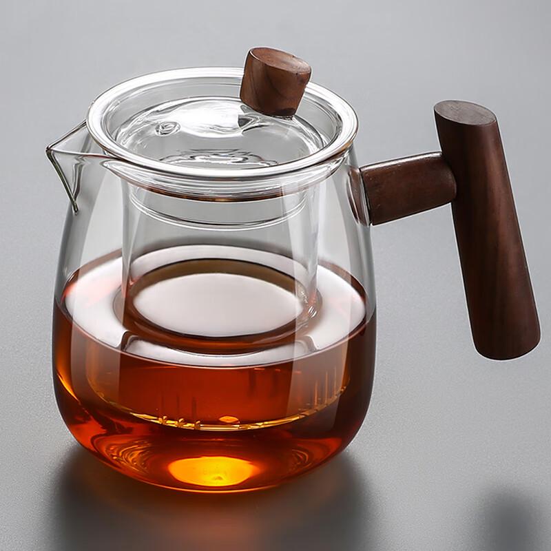 Heat-Resistant Glass Teapot with Wooden Handle and Filter