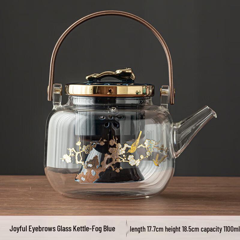 Cha Xun Joyful Plum Blossom Ruyi Handle Glass Teapot