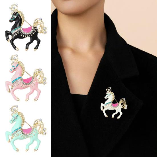 Crafted from high-quality zinc alloy, this brooch offers exceptional durability and corrosion resistance, ensuring long-lasting wear without deformation. Its exquisite design features a retro carousel horse adorned with brilliant rhinestones on the saddle and mane, adding a luxurious sparkling that catches the light beautifully.