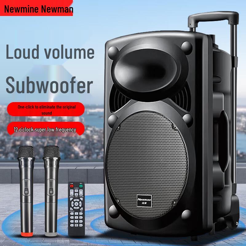 Newman B12 12-inch Outdoor Portable Bluetooth Karaoke Speaker with Dual Mics CN Plug (adapter Included)