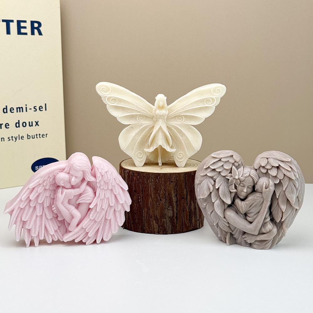 DIY Flat Butterfly Angel Candle Silicone Mold Mother's Day Love Angel Mother and Child Aromatherapy Epoxy Resin Mold Home Decor