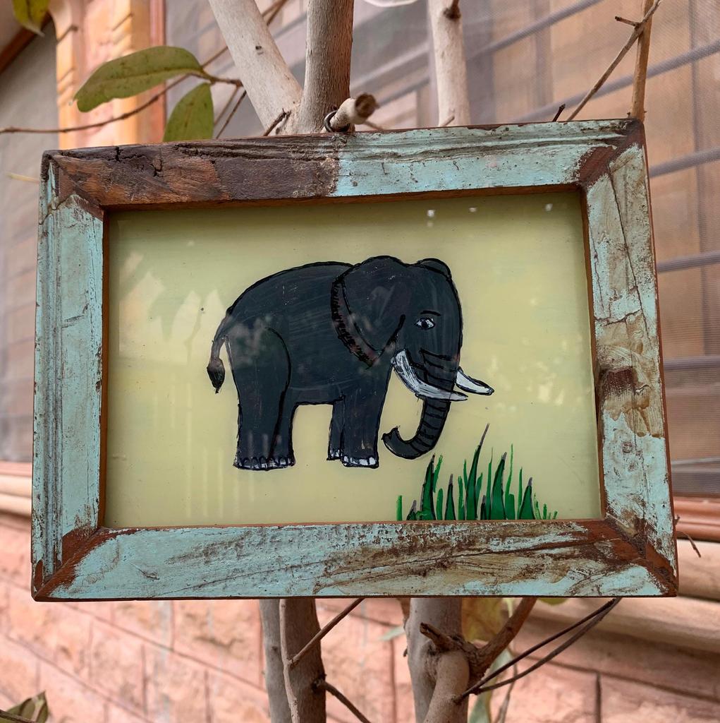 Old Wooden Frame Elephant Glass Painting Rustic Farmhouse Wall Decor