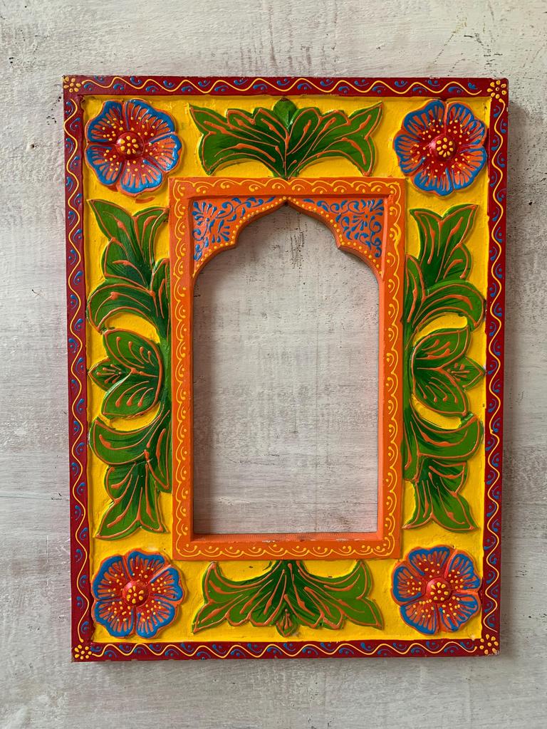 Hand-Painted Wooden Jharokha Frame: Indian Wall Hanging Decor