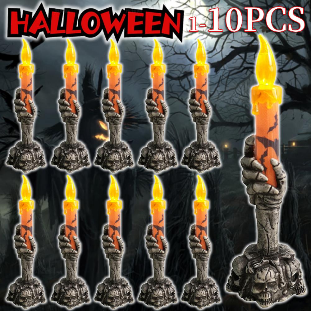1-10PCS Halloween Skull Candle Holder LED Light Skeleton Ghost Hand Flameless Candle Light Party Bar Decoration Decorative