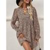 JKASHDK Women's Fashion Spring Fall Long Sleeve V-Neck Loose Waistline Casual Dresses