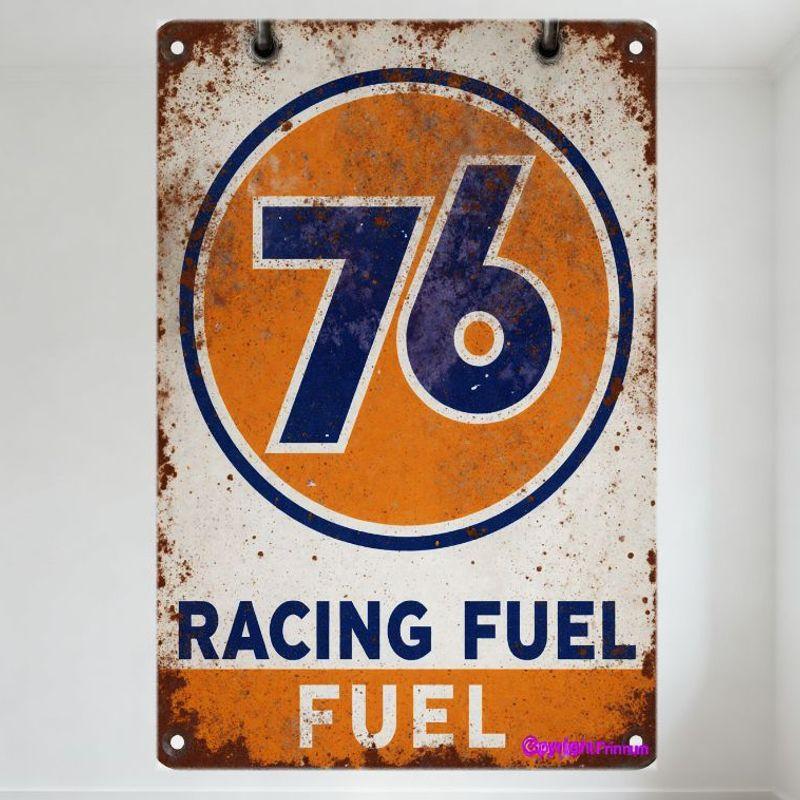 Vintage Racing Fuel Metal Tin Sign, Distressed Retro Rusty Design with Hanging Rings for Man Cave Bar Decor