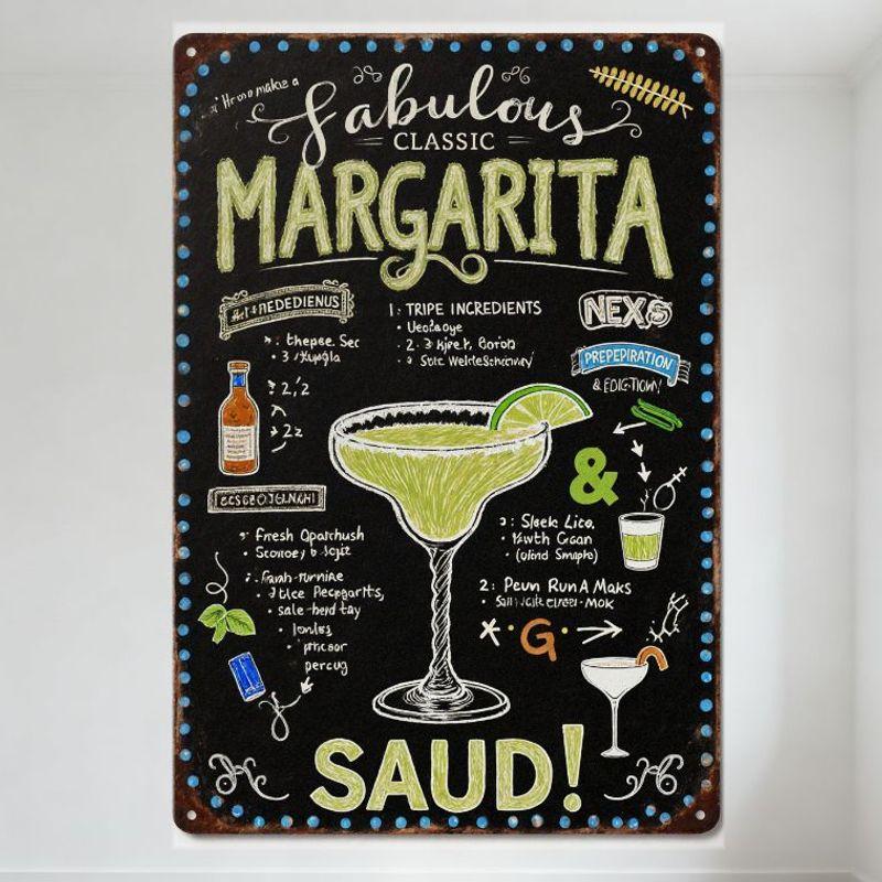 Vintage Chalkboard Style How To Make Fabulous Classic Margarita Metal Tin Sign, Home Bar Club Restaurant Man Cave Wall Decor Wit