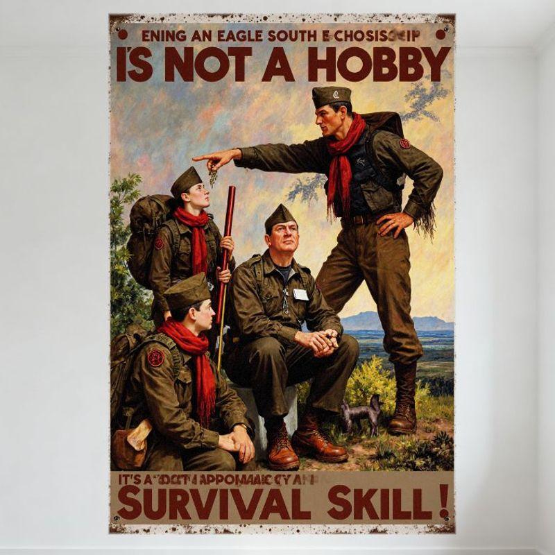 Vintage Military Scout Survival Metal Tin Sign - Weathered Metallic Texture Wall Plaque for Man Cave Bar Home Decor