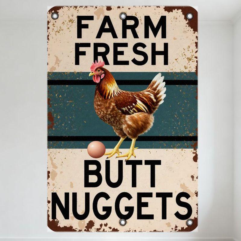 Vintage Farm Fresh Chicken Egg Butt Nuggets Metal Tin Sign Rustic Retro Wall Plaque for Home Bar Cafe Man Cave Decor