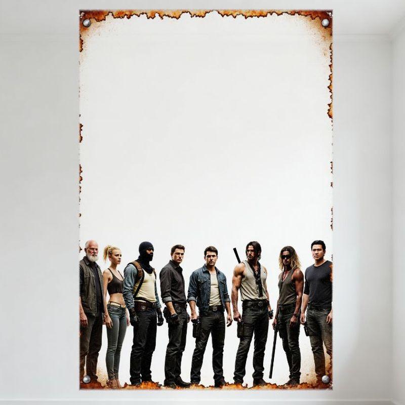 Post-Apocalyptic Survival Group Action Movie Metal Tin Sign, Vintage Rustic Wall Plaque for Man Cave, Bar, Home Decor