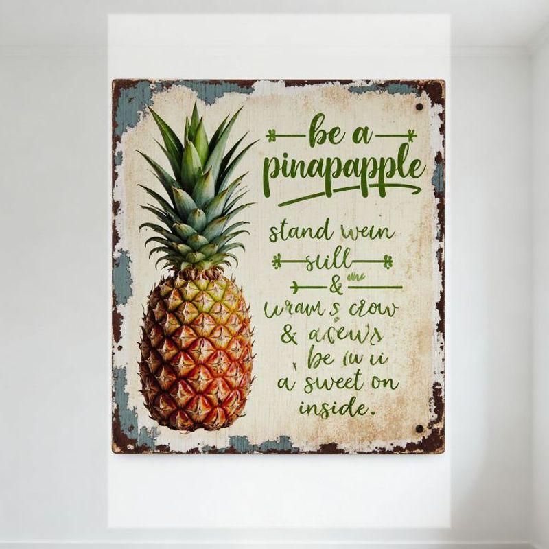 Vintage Rustic Pineapple Metal Tin Sign with 'Be a Pinapple' Whimsical Text - Distressed Tropical Decor for Home Cafe Bar Man Ca