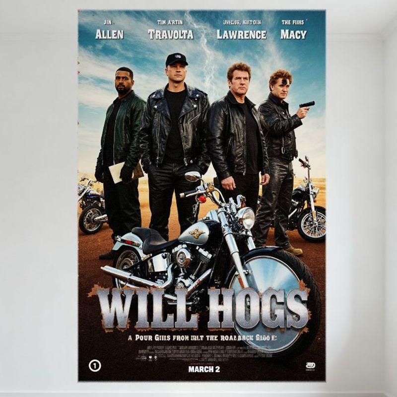 Will Hogs Movie Poster Metal Tin Sign - Vintage Action Adventure Wall Decor with Four Men In Desert - Man Cave Club Bar Home Dec